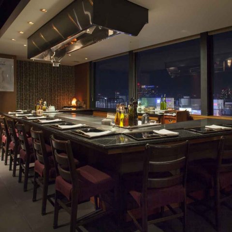 こちらのレストランで印象深いのは、ガラス張りの壁に囲まれたグリルカウンターです。そこで繰り広げられる調理パフォーマンスは舞台のような迫力とインパクトに満ち、記念日をより思い出深く、そして楽しく盛り上げてくれます。