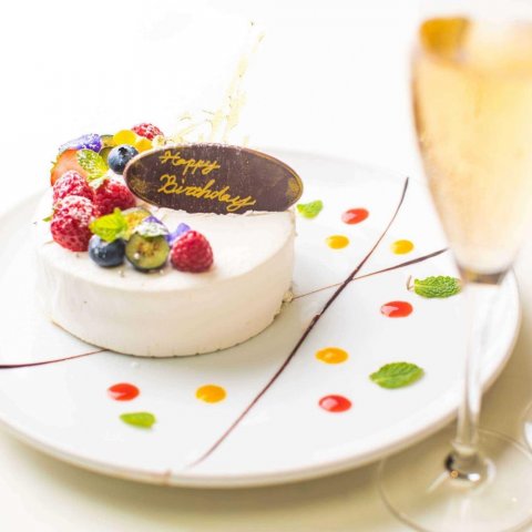 ディナーコースでは追加料金でホールケーキを付けることができます。見た目もおしゃれな料理の上質な味わいが、特別な日を華やかに彩ります。