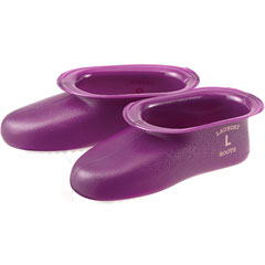 見た目では判断しにくい右足左足は、ブーツの側面に可愛らしい文字で表記されています。イエローとパープルの2色展開で、どちらもお風呂場に差し色を与えてくれるカラーリングです。