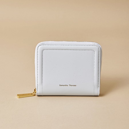 一見シンプルなこのレディース二つ折り財布は、レザーの表面にラメ加工がほどこされています。さりげなく華やかで、サマンサタバサならではの女性らしさを存分に楽しめるデザインです。