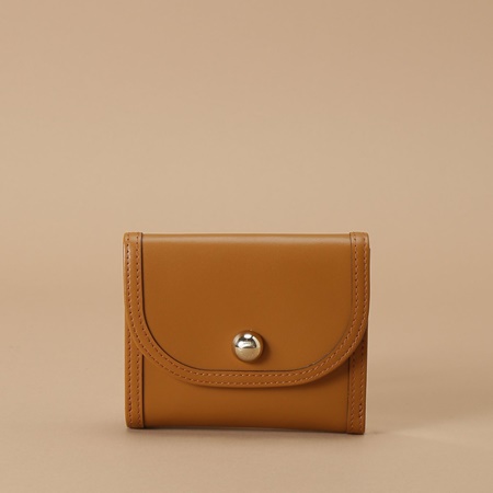 洗練されたミニマルなデザインで人気のこちらのレディース三つ折り財布は、ボディと同じカラーのボタンがアクセントとしてフロントにあしらわれています。
