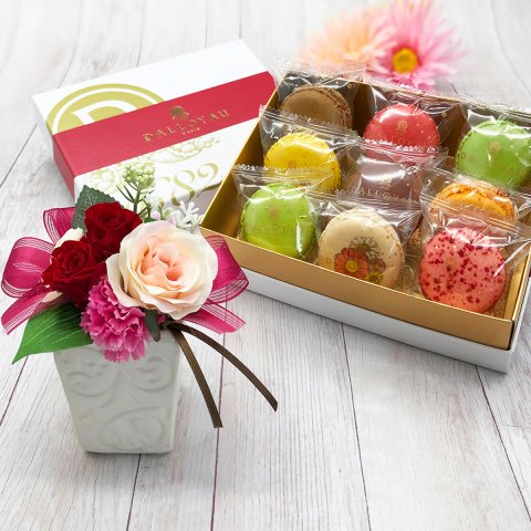 スイーツとカーネーションの生花がセットになったギフトは、お菓子が好きなお母さんへ贈る母の日のプレゼントによく選ばれています。