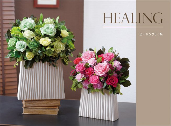 法人のお祝いのお花は、3万円、5万円、10万円と大体の相場があるのですが、ヒーリングは価格的にも法人のお客様に選ばれやすいアイテムだと思います。