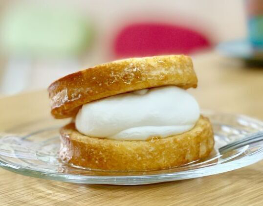 当店のフレンチトーストはもともと断面が丸い食パンで作られているため、かわいい丸みのあるマリトッツォのイメージにぴったりでした。