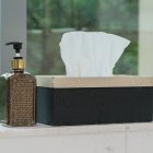 素材は、木やアクリル素材などのモダンテイストなものが好まれています。また、ティッシュ箱を入れたり、箱に被せたりするだけで、簡単にラグジュアリーな雰囲気が出るのも魅力です。