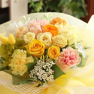 花の種類や色が豊富に揃っているため、相手の方の好みに合わせて選ぶことができます。ピンクなどの暖色系が定番ですが、「サムシングブルー」の青も人気です。