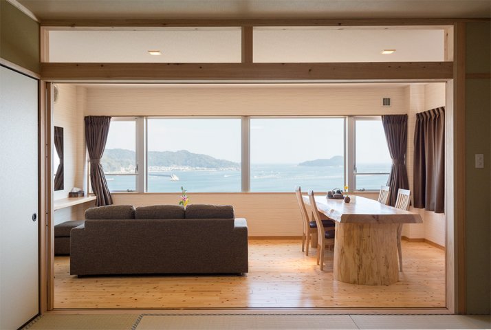 北浦湾を一望できる高台にあり、わずか3室のこじんまりしたホテル。細やかな心遣いが行き届いた宿で、一歩足を踏み入れた瞬間から丁寧なおもてなしを受けられます。