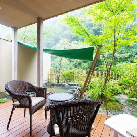 また、身体を動かした後は温泉でしっかりメンテナンスをしてくださいね。露天風呂も良いのですが、せっかくの結婚記念日なら貸切温泉も素敵ですよ。