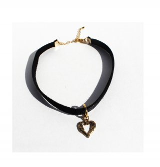 ラフリー ベロア調 ゴールド・シルバーハートチョーカー