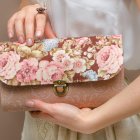 縁取りやハンドル部分の丁寧なステッチ、可憐なデザインのロックチャームが注目のポイントです。