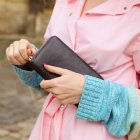 たとえば、ファスナー付きの二つ折り財布は中身が散らばりにくいため、大人の女性らしくスマートに使いこなせます。