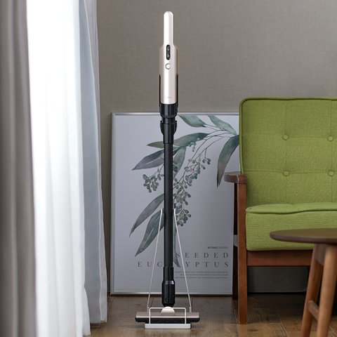 非常にデザイン性が高いスティック型コードレス掃除機は、無駄のないシンプルでモダンなスタイルが主張しすぎず部屋に調和します。
