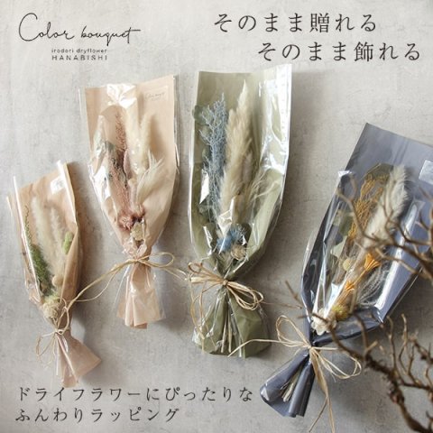 ドライフラワーだけで構成されたものや、ドライフラワーと生花を組み合わせたものがラインナップされており、それぞれに飾っている間の変化を感じられます。