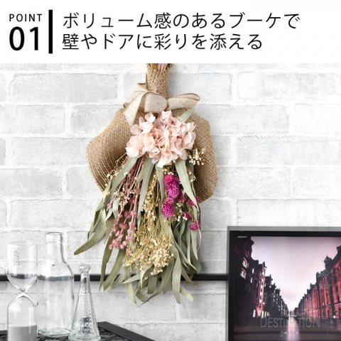 ドライフラワーのスワッグは、女性に人気のアイテムを熟知したデザイナーによって作られており、センスの良いインテリアとして多く選ばれています。