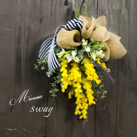 ドライフラワーの花材によって、スワッグの雰囲気は異なります。ボリューム感を出したい場合は、存在感のある紫陽花やアナベル、ふわふわとしたミモザがおすすめです。
