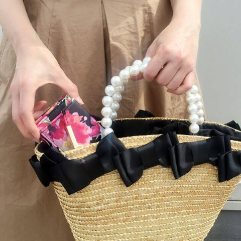 デザイン性の高いコインケースが手元に華やかな雰囲気をプラス