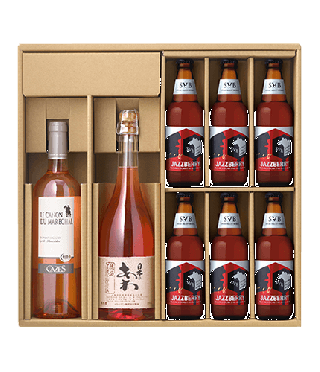 ベリー風味のビールやワインとの詰め合わせという斬新さが印象的なセットで、ロゼカラーが上品な美しさを生み出しています。華やかな雰囲気はホームパーティーにもぴったりで、母の日のプレゼントにもおすすめ。ベリー系のお酒でも辛口や爽やかな味わいのものが多いため、幅広い層の女性が飲みやすいのも嬉しいポイントです。