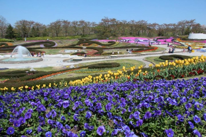 釜房ダム湖畔にある国営公園「みちのく杜の湖畔公園」では、美しい花畑の中の散策を楽しめます。なかでも、ベストシーズンである春の、チューリップやパンジーによる大規模なアートは評判が高いです。