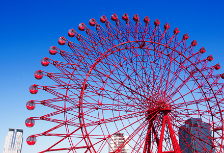 イベントホールでは、ユニークな展示や演劇、トークイベントなどが盛りだくさん。気象条件などに問題が無ければシンボルの真っ赤な観覧車に乗って大阪の街を360度見渡して、忘れられない記念日の思い出を作ることができます。