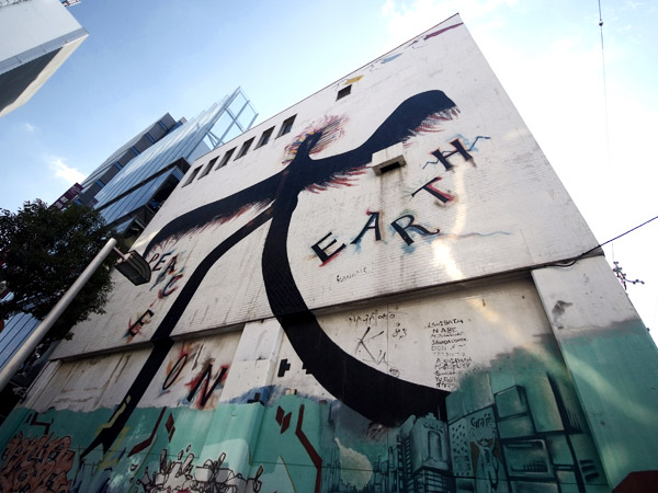大阪市中央区西心斎橋付近のエリアは、通称「アメリカ村」と呼ばれる大阪屈指の若者文化の発信地。アーティストがペインティングした雑居ビルや個性的なショップ、古着屋などが集まり強烈で独特の雰囲気を持つスポットです。