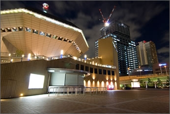 多目的イベントスペースとして有名な湊町リバープレイスは、八角形のユニークな形が特徴です。駅にも近く阪神高速15号堺線のPAも併設しているので、様々な交通手段で訪れることができます。