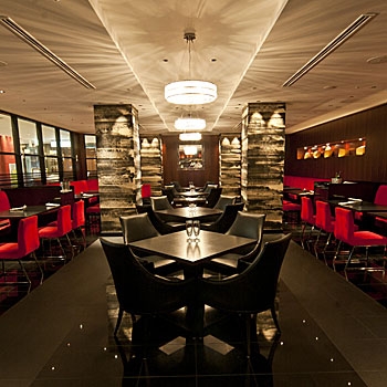 赤い照明が目を引くモダンで優雅な内装の店内で、フカヒレをはじめとする高級中華メニューを堪能できます。