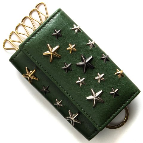 ナンシー マルチメタリックミックス スタースタッズ付き レザー キ―ケース