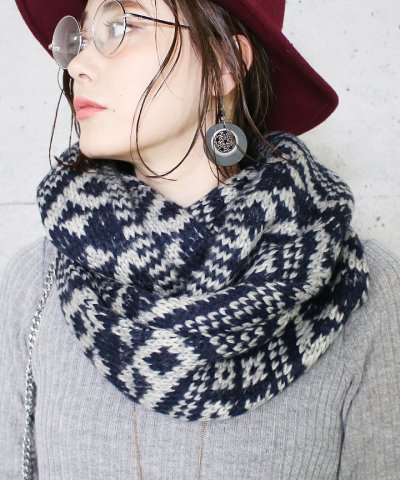 ネイティブアメリカンのオルテガ一族に由来すると言われる、特徴的なオルテガ柄のスヌードです。柔らかいニットを使用しているので、肌触りがよく適度なボリュームがあります。