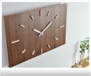 心が落ち着くと言われる、横長の長方形が特徴の木製時計です。天然素材を使っているので、色味や木目が何とも言えない大人の雰囲気を醸し出しています。