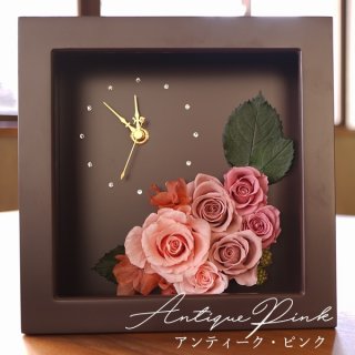シックな色合いがおしゃれで、美しいプリザーブドフラワーを使った花時計です。そのうえ、文字盤もデザイン性を重視したシンプルなものとなっています。