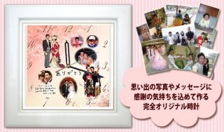 ネームインポエムが特徴の写真入り時計です。新郎新婦の名前が入った直筆のポエムなので、世界にひとつだけの時計をプレゼントすることができます。