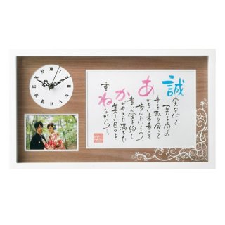 枠の色は白と黒の2種類ありますが、結婚式のプレゼントにはやはり白がおすすめです。ウェルカムボードとしても使え、大きなポエムの隣に写真と時計が入るデザインが支持を集めています。