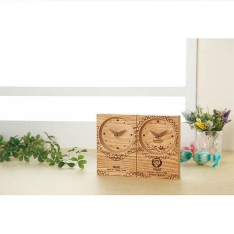 また、木の種類を選べることはもちろん、文字盤も3種類から変えられるので便利です。時計本体に動物のマークやポイントデザインをつけることもできるので、デザイン性の高い三連時計と言えます。