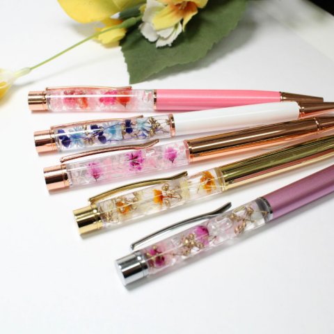 持ち手の部分にハーバリウムが取り入れられたボールペンや印鑑は、周りとさりげなく差を付けられる日用品として人気を集めています。