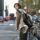 大容量ながらスリムなバッグは、ビジネスシーンで使うとスーツ姿をスタイリッシュに見せてくれます。