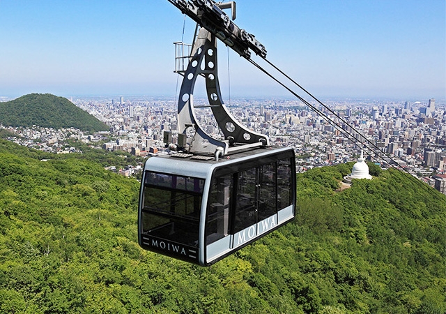 標高約530mの小高い山で、ロープウェイで山頂まで簡単に上ることができます。最寄駅は市電の「ロープウェイ入口」駅ですが、そこから先はロープウェイの入り口まで無料シャトルバスが出ていて便利です。豊かな森とスキー場があり、札幌市民憩いの場としても有名です。また、山頂付近にはレストランがあり、美しい夜景を眺めながら食事を楽しめます。