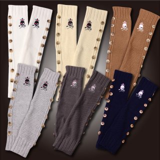 こちらは、ざっくり編まれたニットが見た目にも温かい、レッグウォーマーです。スカルのワンポイントに加え、一列に並んだ飾りボタンがファッションにアクセントを加えてくれます。