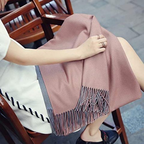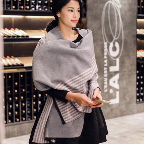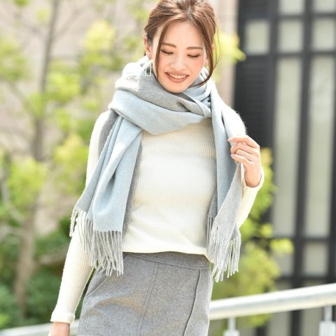 流行りの大判サイズは、ひざ掛けとしても使えるため、オフィスで働く30代女性に人気です。