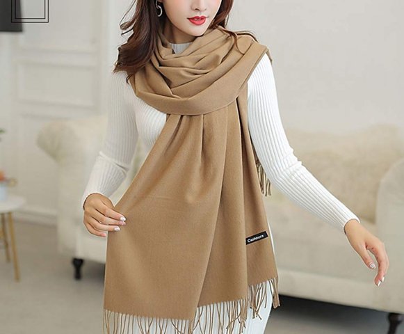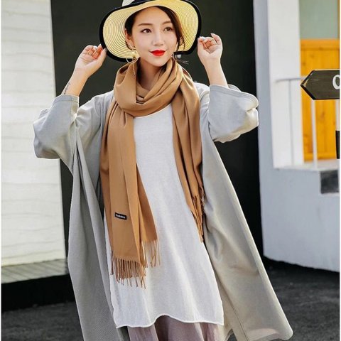 また、ベージュのカシミヤマフラーは顔映りが良く、どんなコーデにも合わせやすいと人気です。