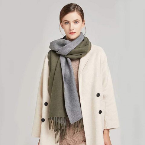 30代女性には肌色が明るく見える、くすみカラーのレディースマフラーが最適です。いろいろなコーデに合わせやすいので、ひとつ持っておくと重宝します。