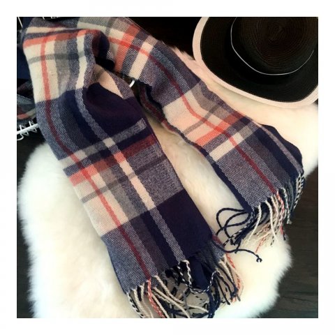 赤・白・黒の線で織り成す代表的なチェック柄のデザインは、レディースマフラーでも人気です。
