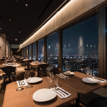 都会の景色が一望できるテーブル席に加え、カウンター席や個室など複数のタイプの席があり、様々な用途で利用されているお店です。