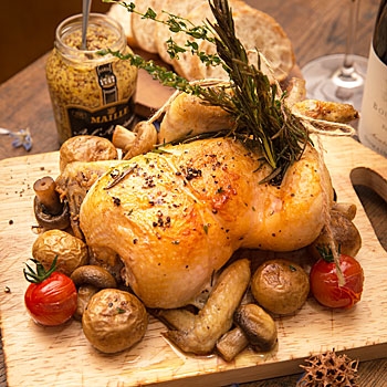 5,000円の記念日ディナーは全部で5品が並ぶコース料理です。レストランの看板メニューでもあるロティサリーチキンをはじめ、特大ハマグリの香草白ワイン蒸しなどがあり、グルメな2人も満足できます。