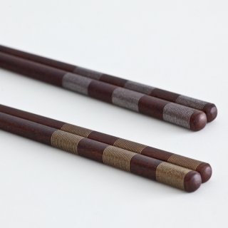ほっこりとする木製の箸に、細かな金色と銀色の線がボーダー模様を生み出しているデザインです。上品さも感じられる箸なので、優雅な食事の空間を演出してくれます。