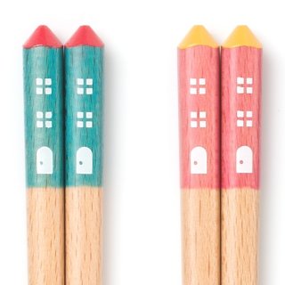 ケユカのおもちゃの家箸はプラスチック製ではなく、お子様用箸に向いていると言われている木製の箸です。箸の上部が家の三角屋根のようなデザインで、さりげなく個性が光ります。