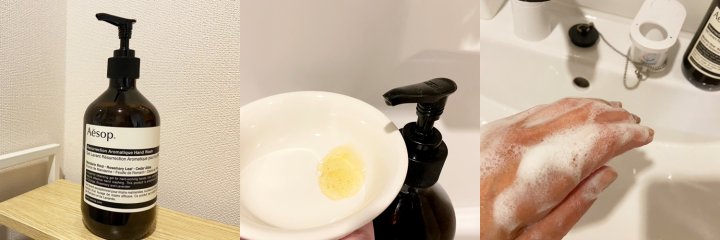 イソップのハンドウォッシュは、手指の汚れを落としながらケアもできるのが魅力です。