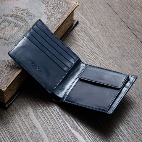 イタリア産の原皮を使用したメンズ二つ折り財布は、品質が高く上品な作りです。