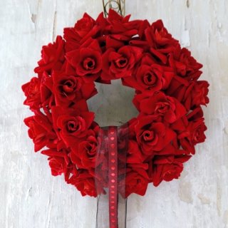 「レッドローズリース」は素材にもこだわっており、贅沢にベルベットの生地を使用してバラを製作しているのが特徴です。そのため、本物のバラのような光沢感と柔らかさが表現されています。