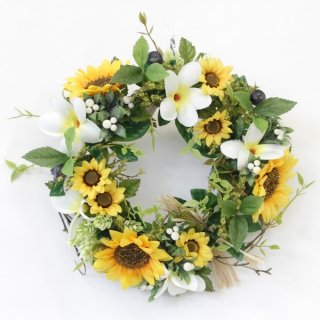 ひまわりとプルメリアのリース壁掛け