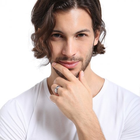 精密に彫られた模様が特徴のメンズ指輪は、芸術品のような美しさが愛されています。